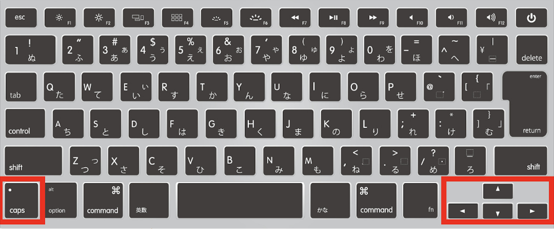 「Caps」を押しながら「←」または「→」